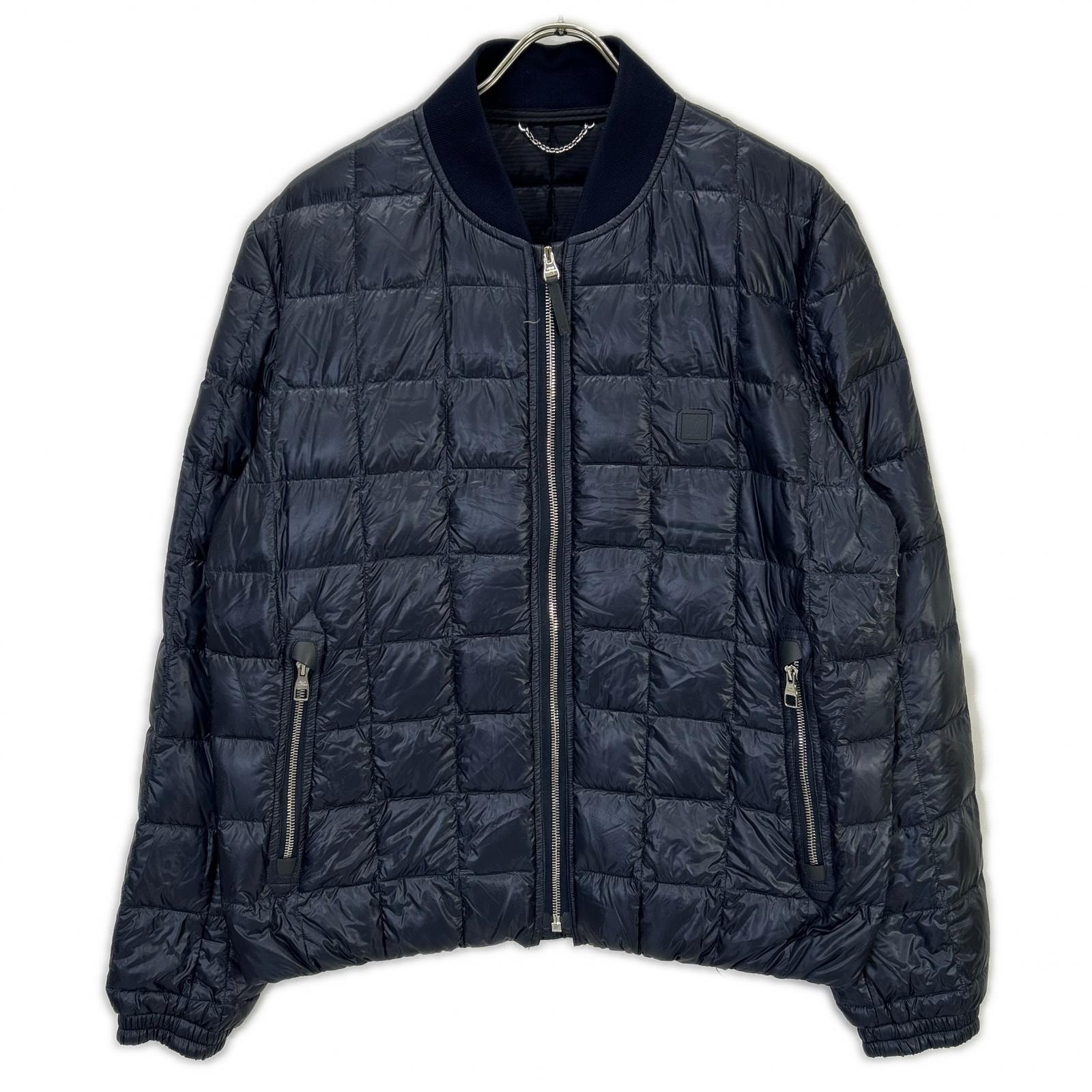 ルイヴィトン H9B44W ネイビー キルティング ジップアップ ロゴパッチ ダウンジャケット 48