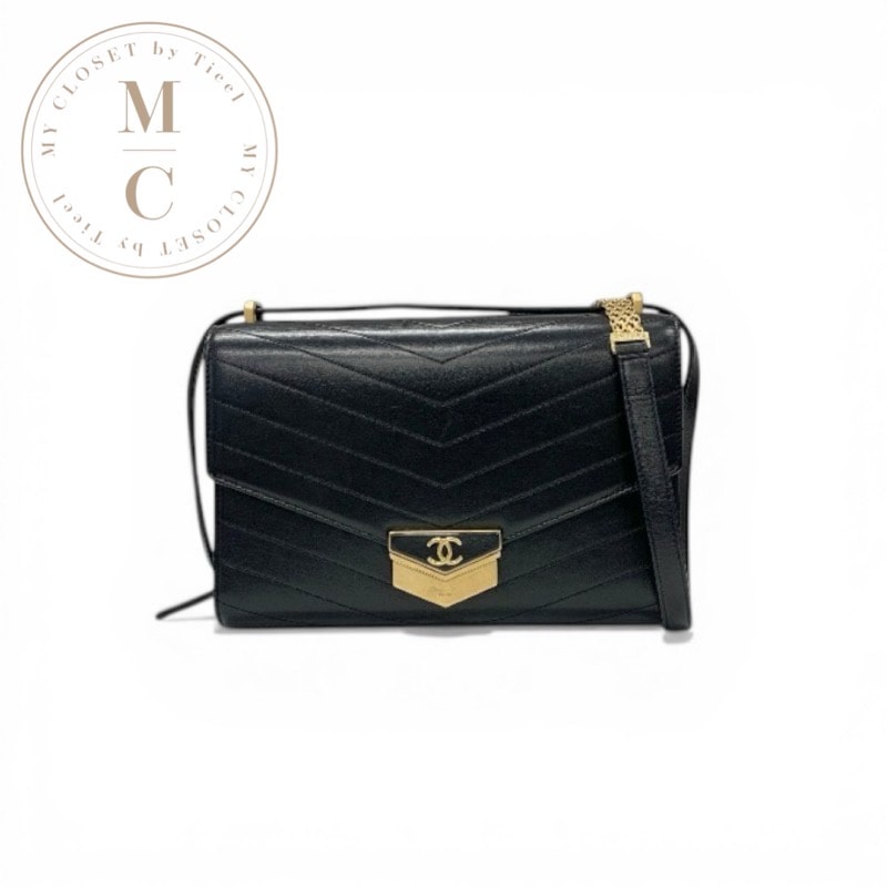 シャネル CHANEL バッグ ショルダーバッグ ブラック ゴールド ココマーク シェブロン メダル フラップ バッグ Vステッチ ロゴ