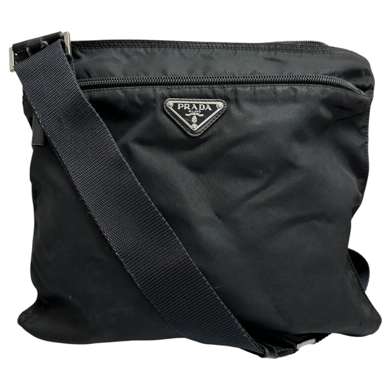 PRADA プラダ テスート 三角ロゴ ブラック シルバー金具 ナイロン ショルダーバッグ S1-00091 【中古】