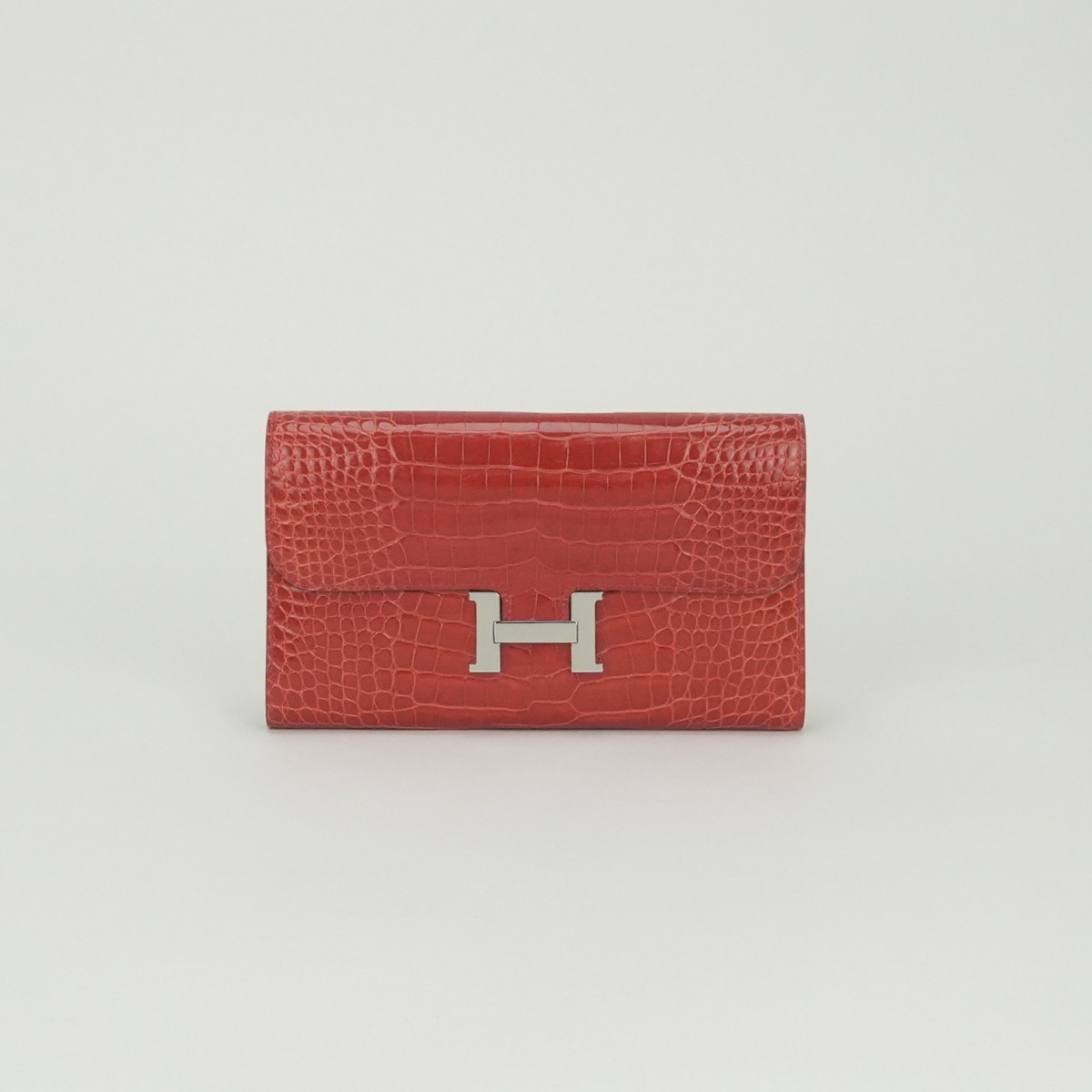 エルメス HERMES コンスタンスロング コンスタンス ロング 財布 長財布 ロングウォレット クロコダイル アリゲーター Geranium ゼラニウム レッド Red 赤 シルバー金具 エキゾチック