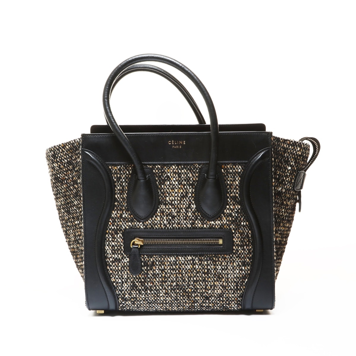 セリーヌ CELINE ラゲージ マイクロショッパー ツイード ハンドバッグ【中古】