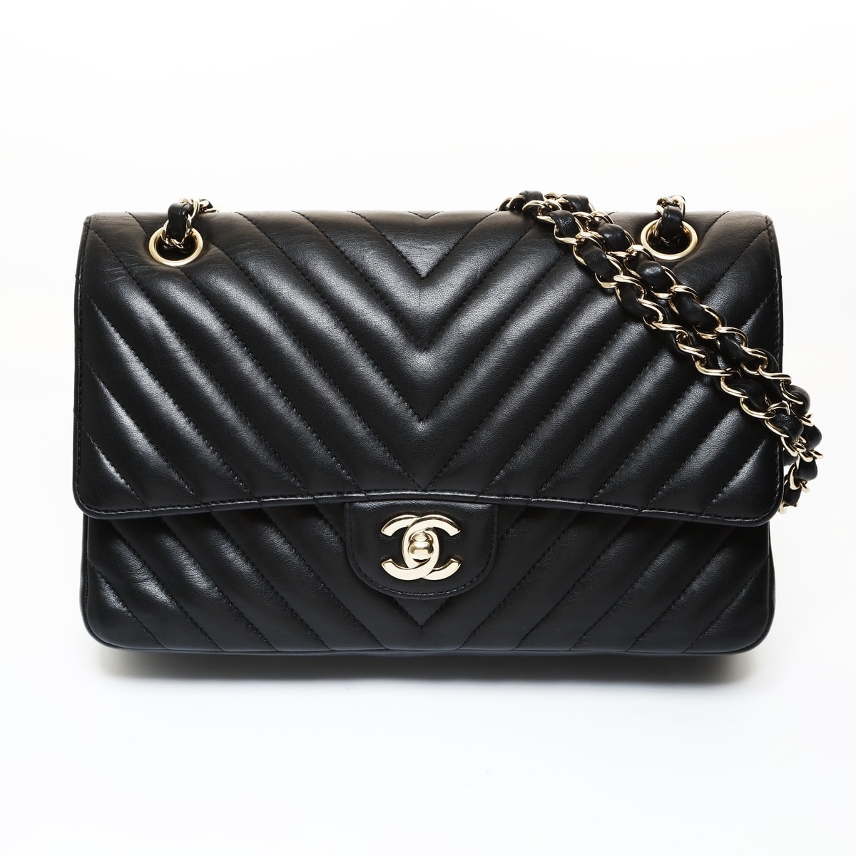 シャネル CHANEL 25番台 2018 シェブロン ココマーク ダブルフラップ ショルダーバッグ【中古】