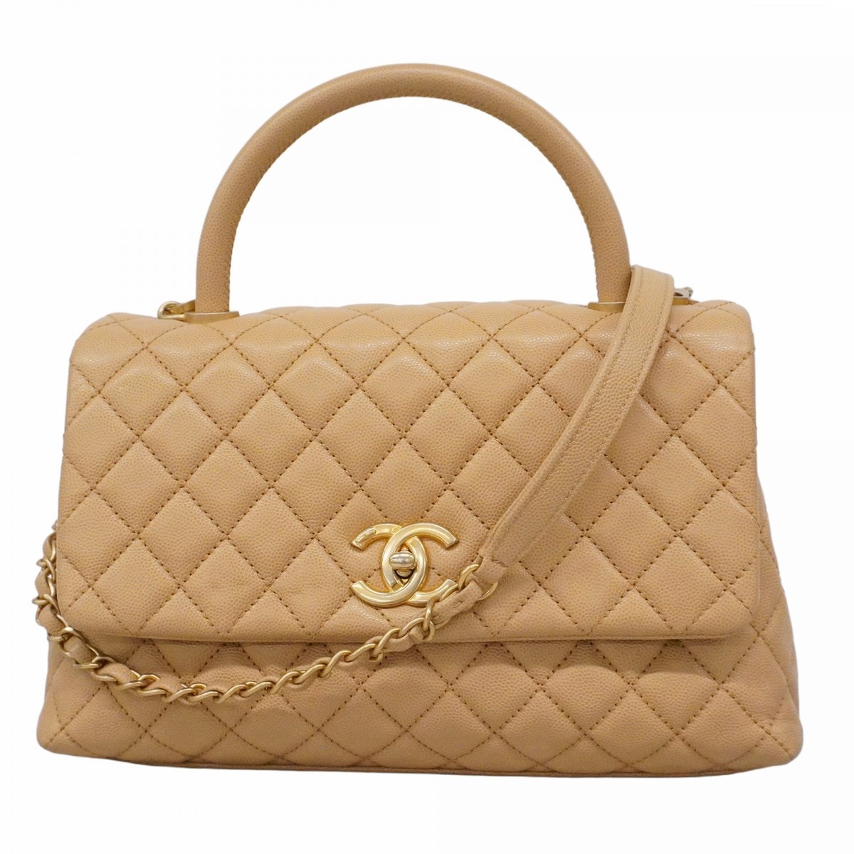 【6de5552】シャネル ハンドバッグ チェーンショルダー ココハンドル キャビアスキン ベージュ ゴールド金具 2wayバッグ【中古】レディース