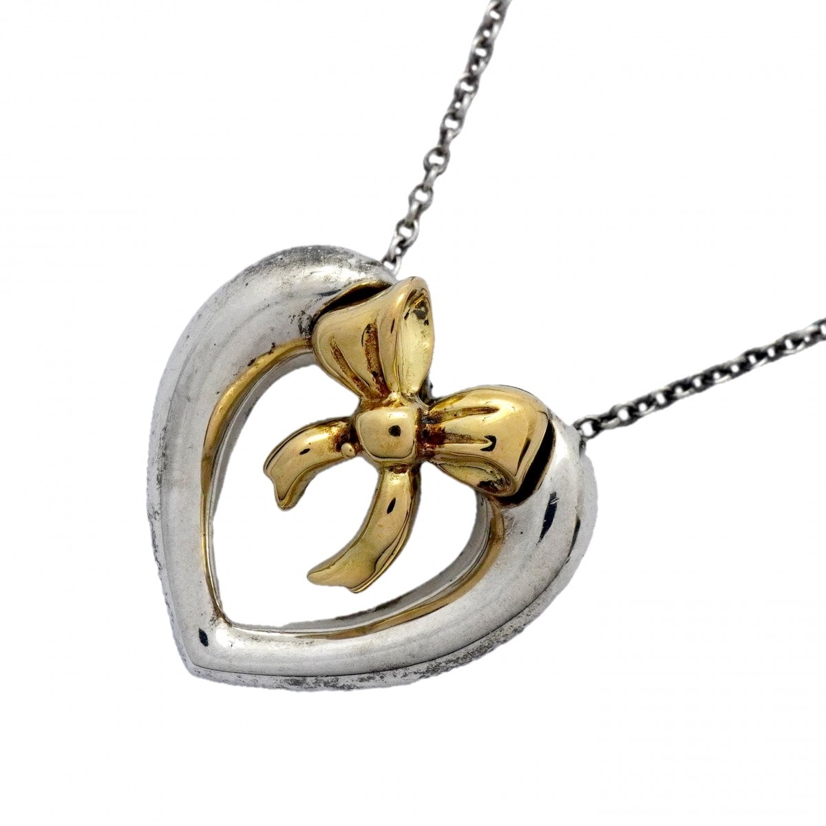 【6jcb0888-k】ティファニー ネックレス リボンハート K18YG イエローゴールド シルバー925【中古】レディース
