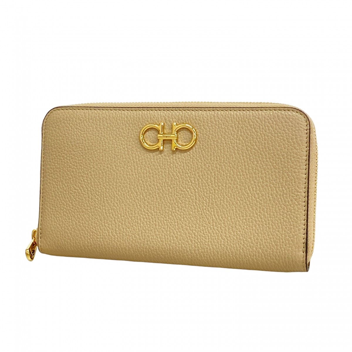 【6dc2983】サルヴァトーレフェラガモ 長財布 ガンチーニ レザー ベージュ ゴールド金具【中古】レディース