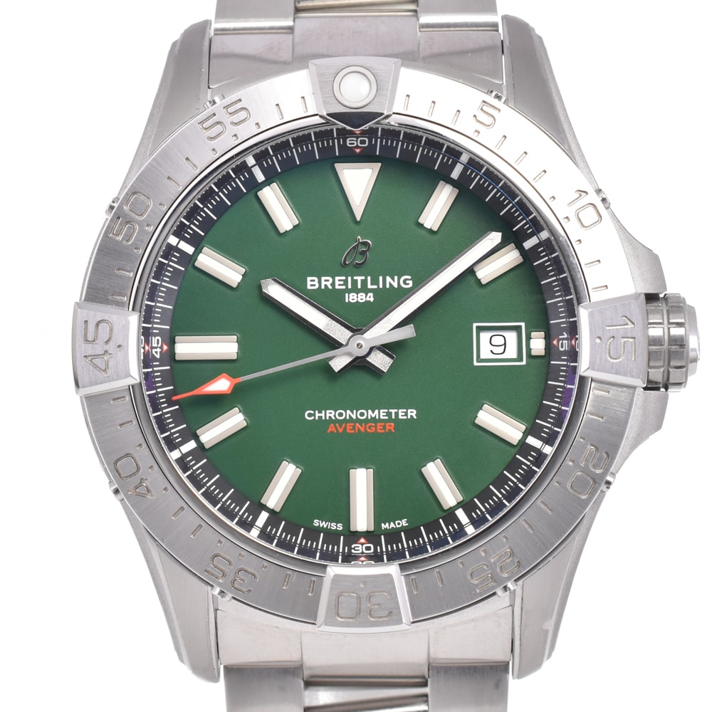 ブライトリング BREITLING A17328 アベンジャー デイト グリーン 自動巻き メンズ 極美品 内箱・保証書付き 腕時計 D#147354