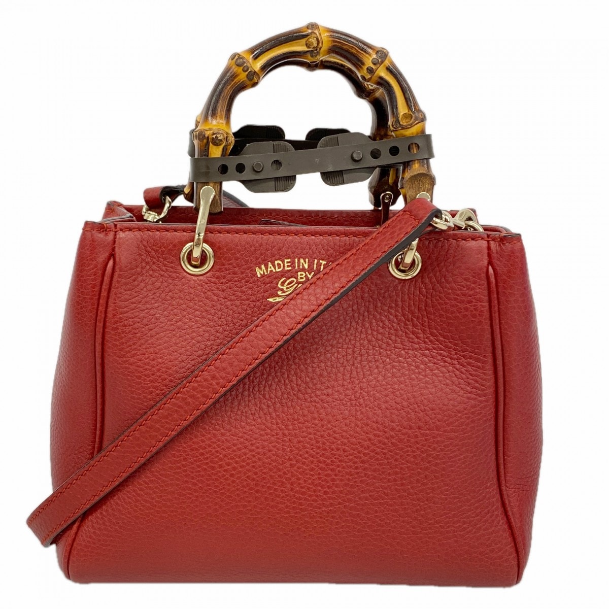 【6dd4953-k】グッチ ハンドバッグ バンブー 368823 レザー レッド シャンパンゴールド金具 2wayバッグ【中古】レディース