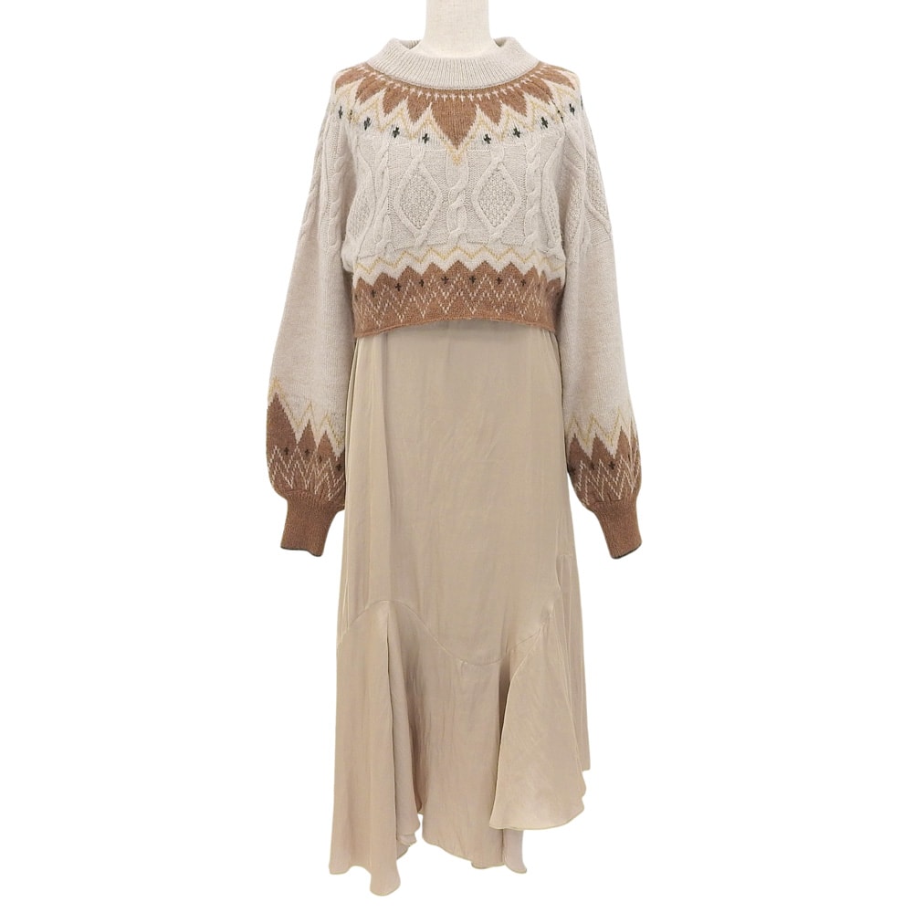 ファーファー ノルディックニット ワンピース レディース ベージュ ONE RWN0214072 ONE