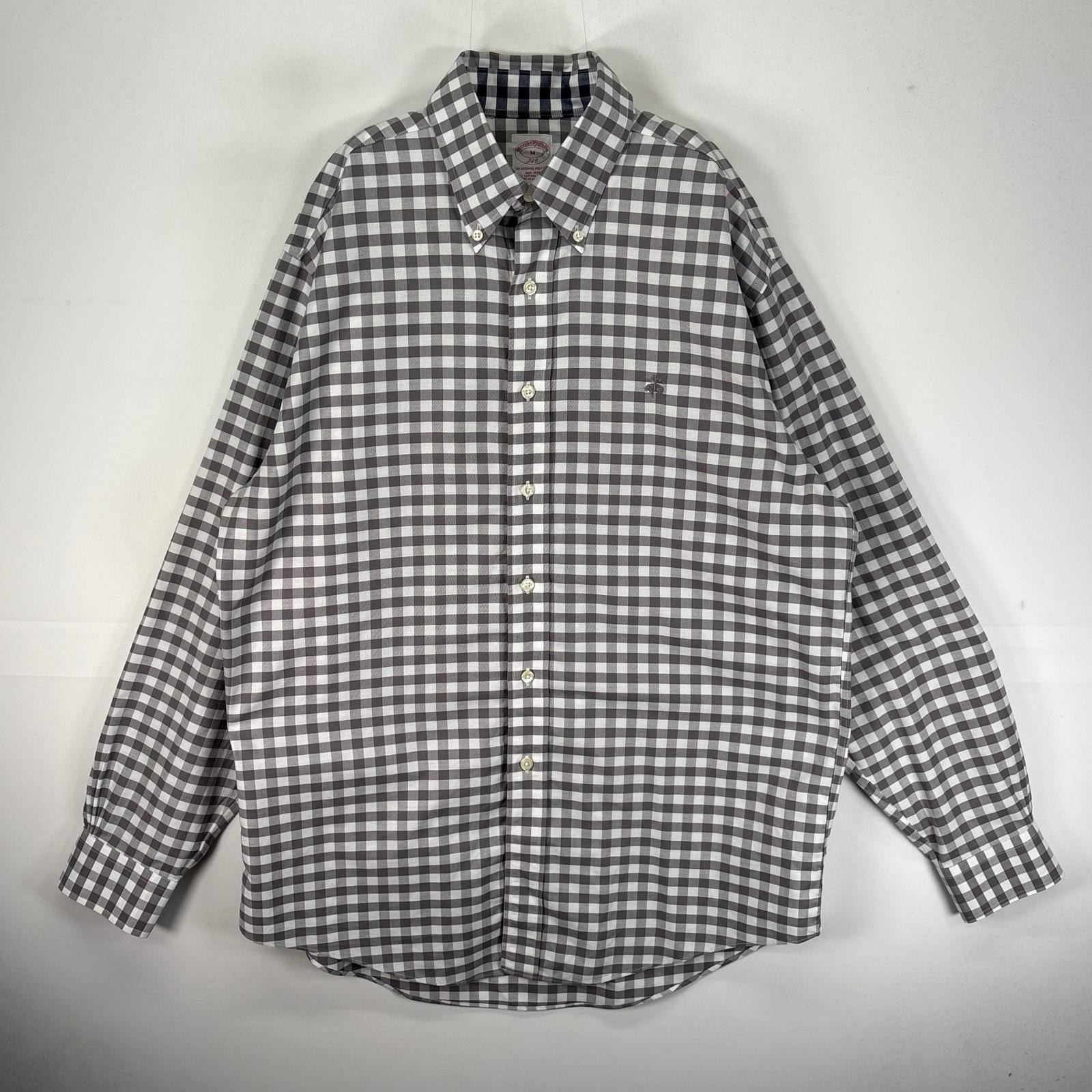 古着 ブルックスブラザーズ Brooks Brothers 長袖シャツ ボタンダウン ワンポイント M グレー系 チェック メンズ