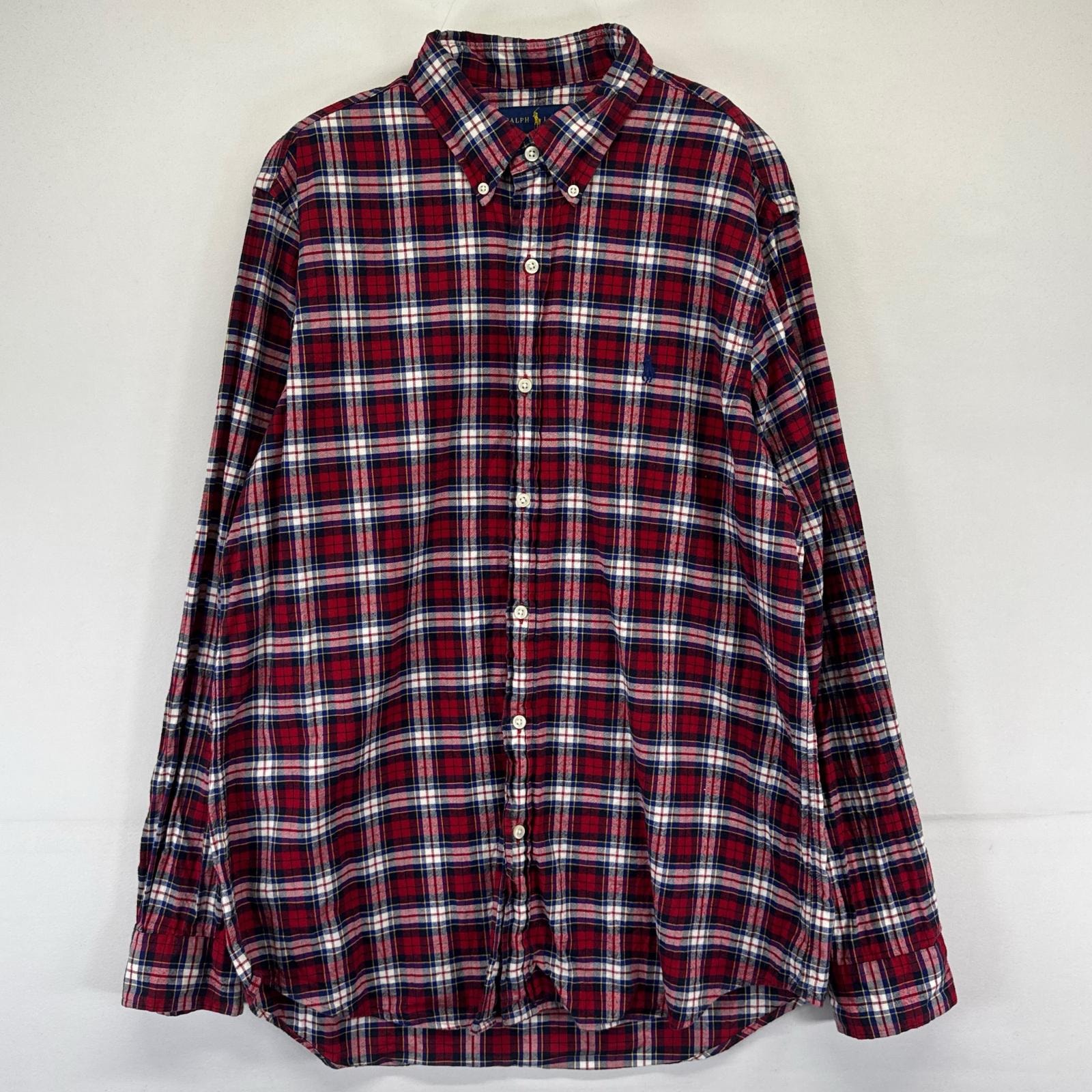 古着 ラルフローレン RALPH LAUREN 長袖シャツ ボタンダウン ワンポイント ロゴ 刺繍 L レッド系 チェック メンズ
