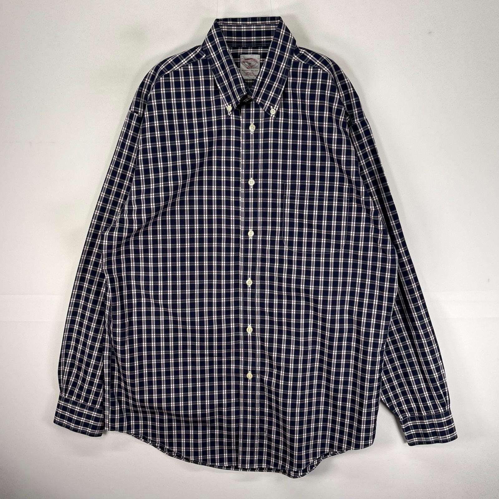 古着 ブルックスブラザーズ Brooks Brothers 長袖シャツ ボタンダウン 胸ポケット M ネイビー系 チェック メンズ