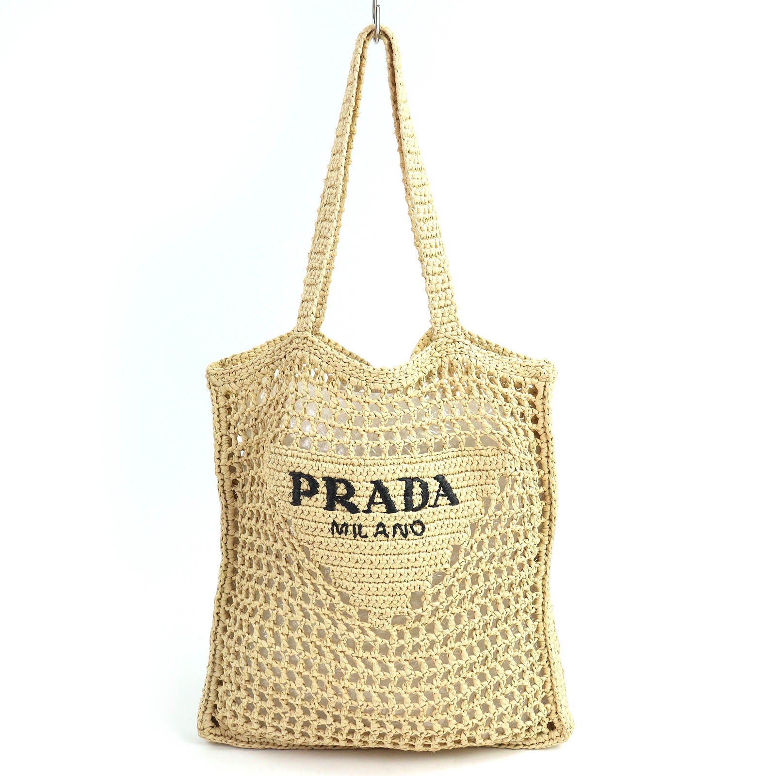 美品 プラダ トライアングルロゴ ラフィア クロシェ トートバッグ 1BG393