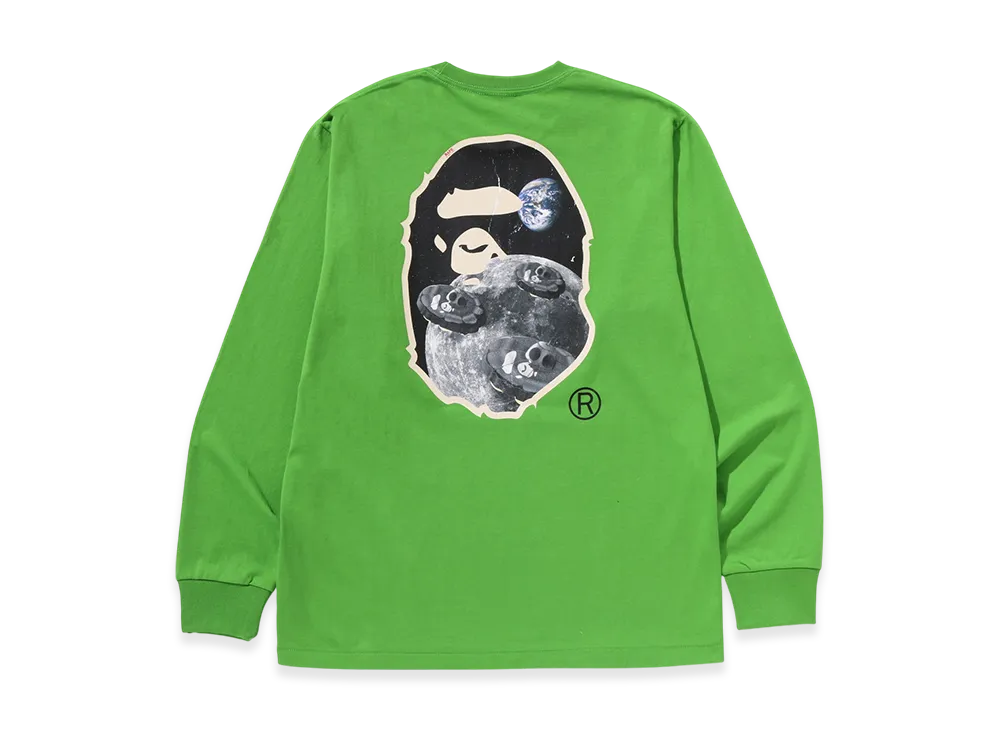 A BATHING APE Moon Ape Head Old Photo L/S Tee "Green"