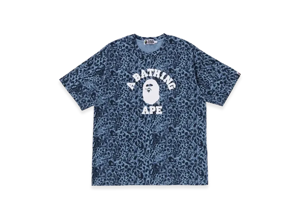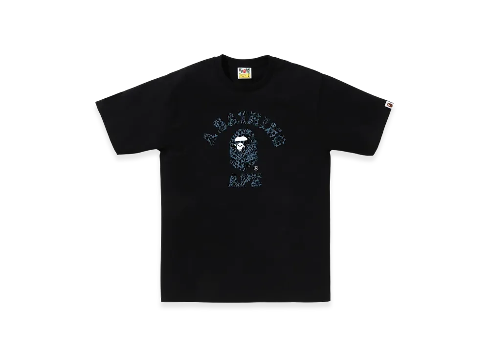 A BATHING APE Wild Leopard Pattern College Relaxed Fit Tee "Navy"