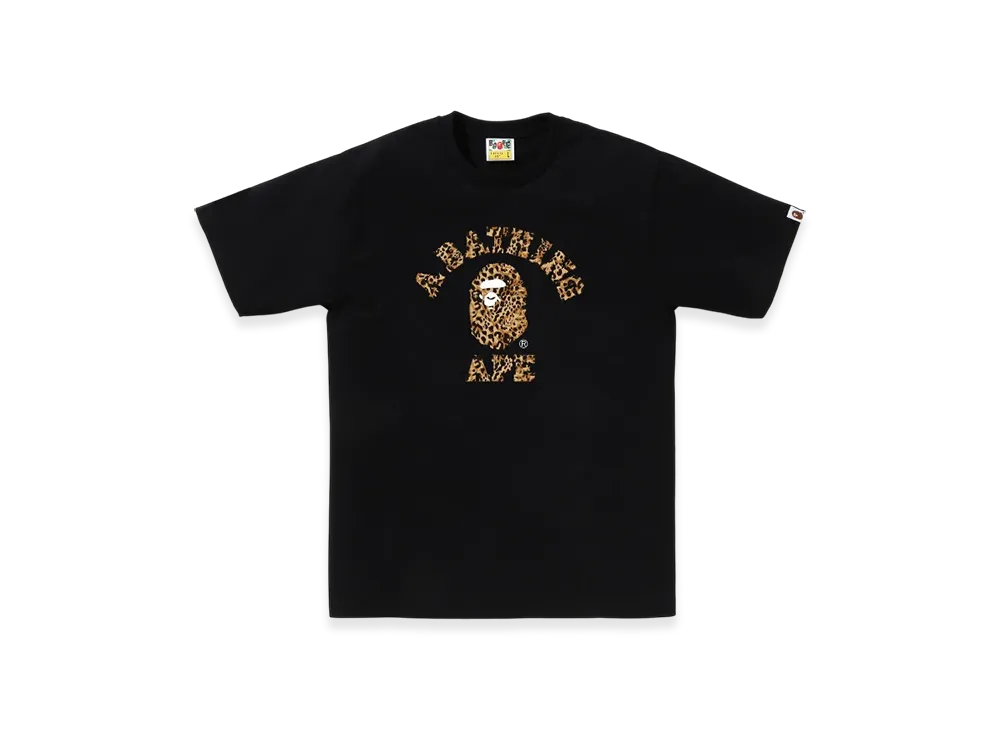 A BATHING APE Wild Leopard Pattern College Tee "Black Beige"