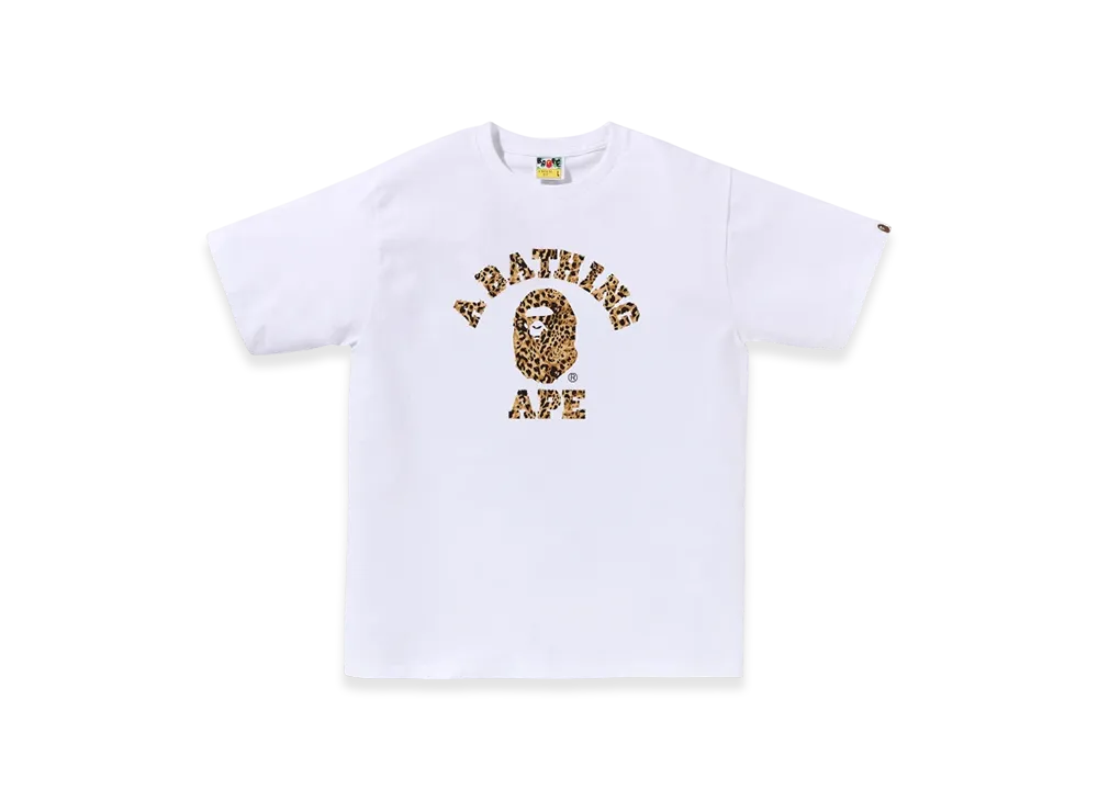 A BATHING APE Wild Leopard Pattern College Tee "White Beige"