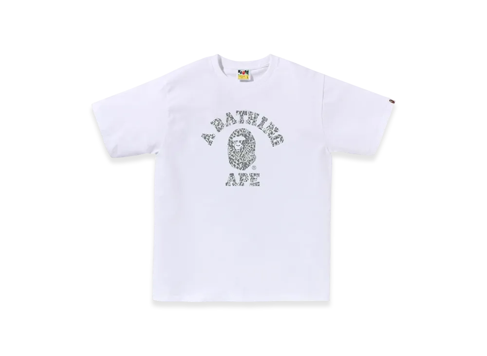A BATHING APE Wild Leopard Pattern College Tee "White Grey"