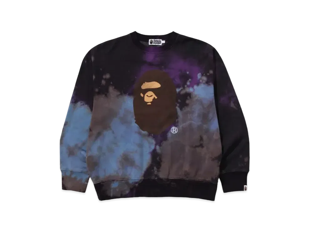 A BATHING APE Tie Dye Ape Head Relaxed Fit Crewneck Sweatshirt "Black"