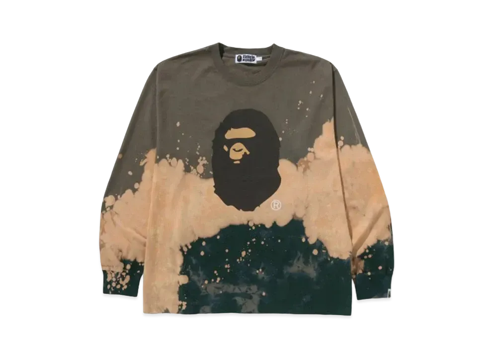 A BATHING APE Tie Dye Ape Head Relaxed Fit LS Tee "Beige"