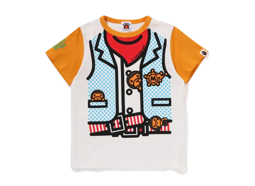 A BATHING APE Baby Milo Sheriff Vest Print Tee "Orange"