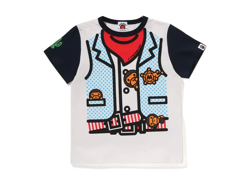 A BATHING APE Baby Milo Sheriff Vest Print Tee "Navy"