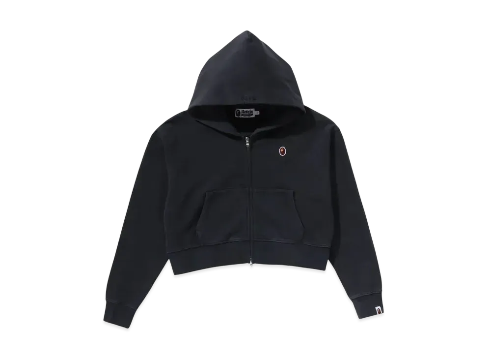 A BATHING APE Pigment Dyed One Point Cropped Zip Hoodie "Black"