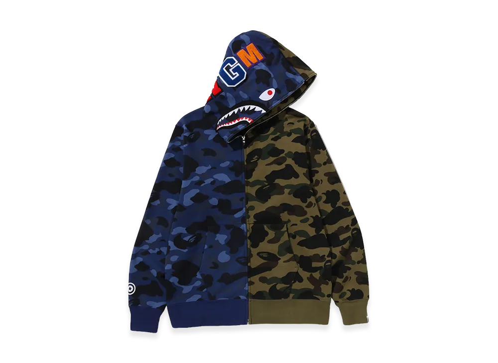 A BATHING APE Split Camo Shark Full Zip Hoodie "Navy"
