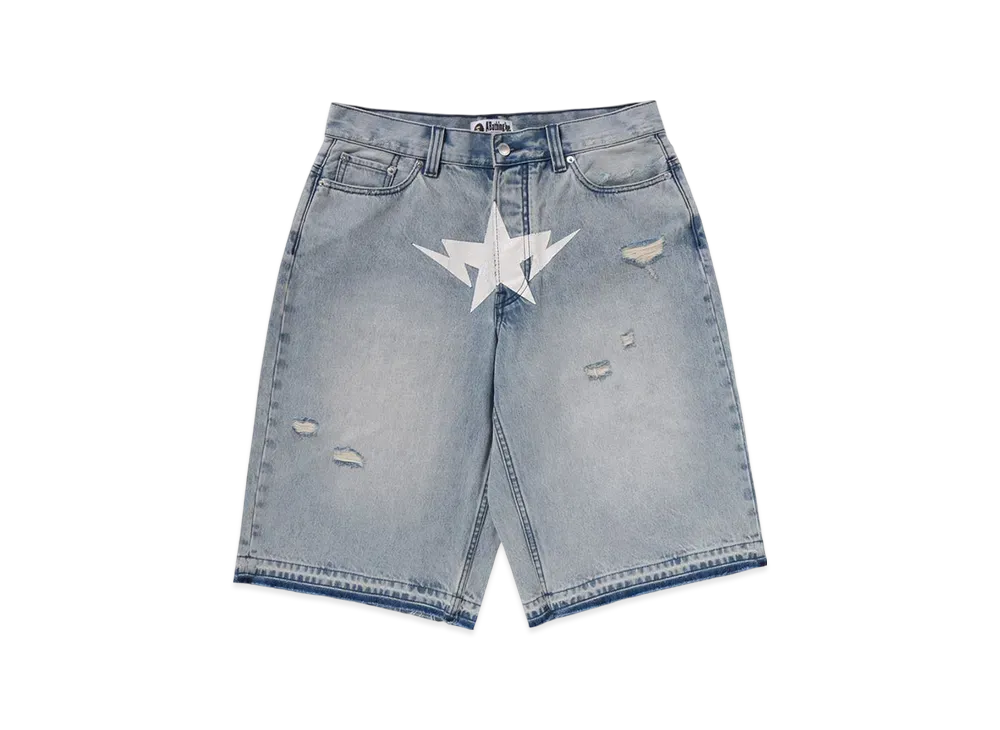 A BATHING APE Destroyed Sta Relaxed Fit 13OZ Demin Shorts "Lightindi"