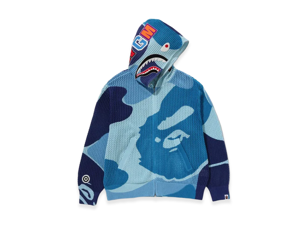 A BATHING APE ABC Camo Crochet Shark Relaxed Fit Full Zip Hoodie "Blue"