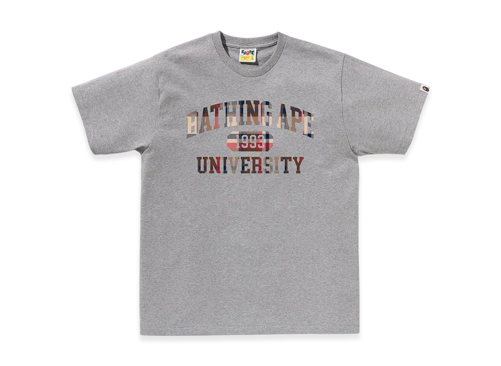 A BATHING APE Bape Check University College Logo Tee "Gray/Red"