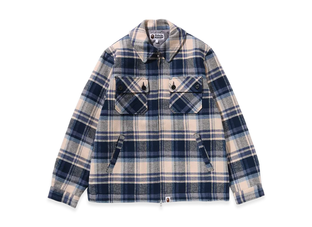 A BATHING APE Bape Check Cpo Zip Jacket "Navy"