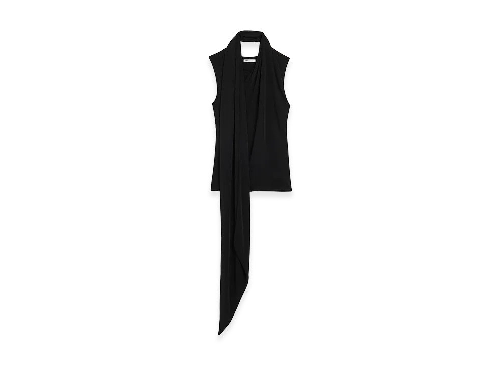 AMI PARIS Jersey Sleeveless Lavalliere Top "Black"