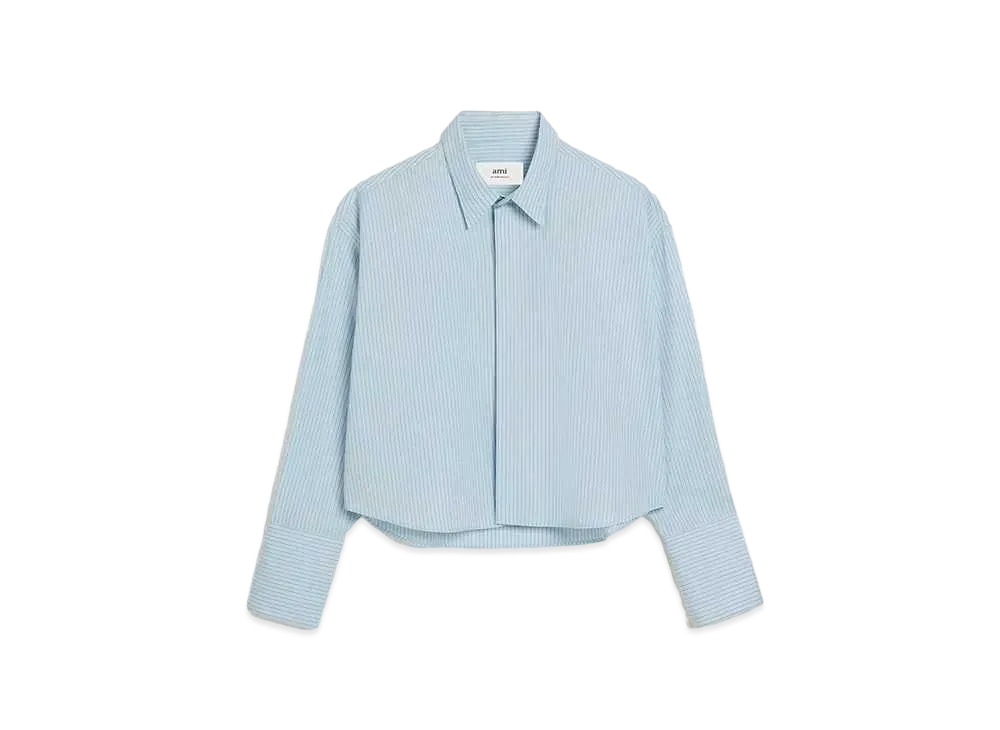 AMI PARIS Stripe Cotton Poplin Cropped Shirt "Cashmere Blue & Chalk"