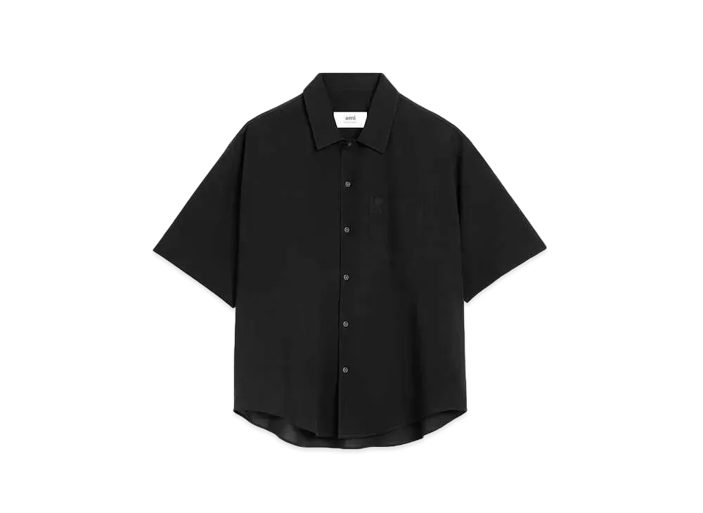 AMI PARIS Cotton Crepe Camp Collar Short Sleeve Shirt "Black"