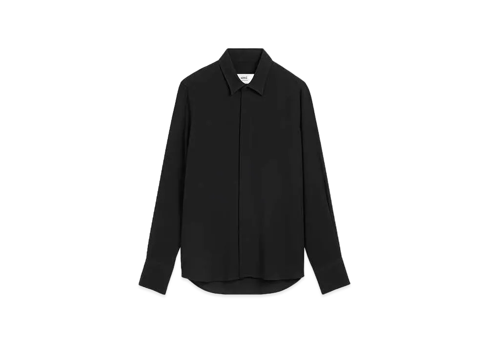 AMI PARIS Wool Blend Gabardine AMI DE COEUR Classic Fit Shirt "Black"