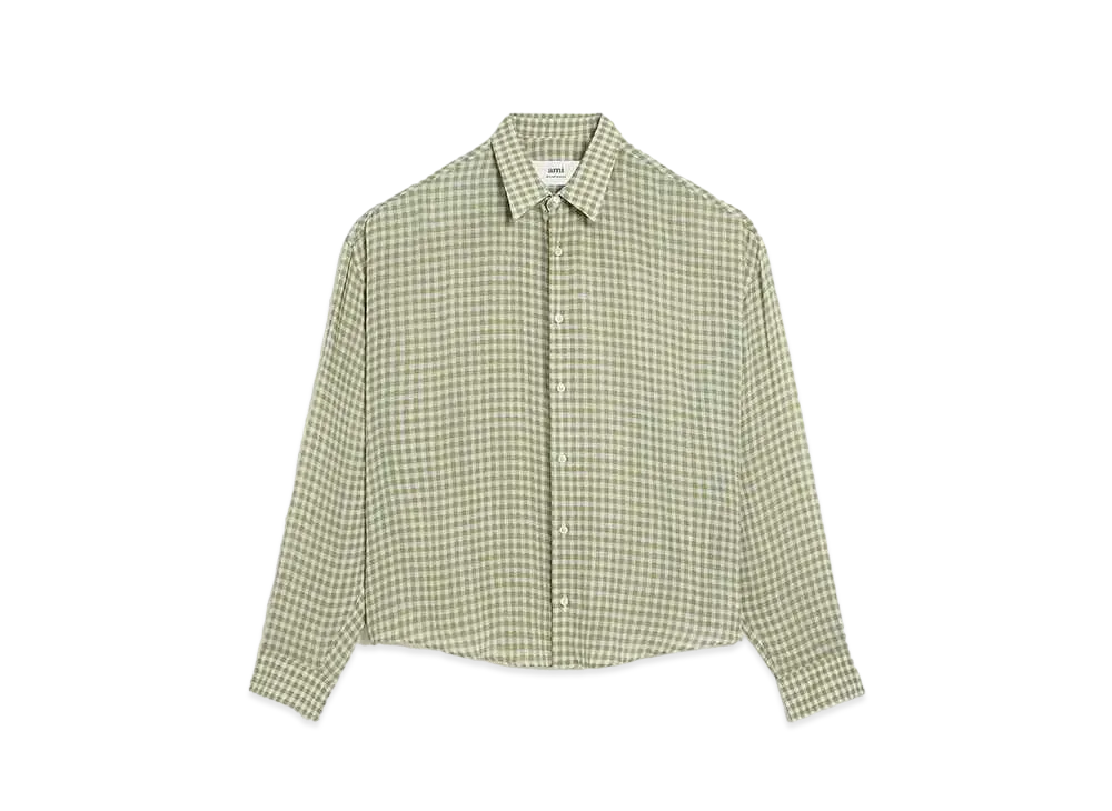 AMI PARIS Viscose Crepe Check Boxy Fit Shirt "Chalk & Olive"
