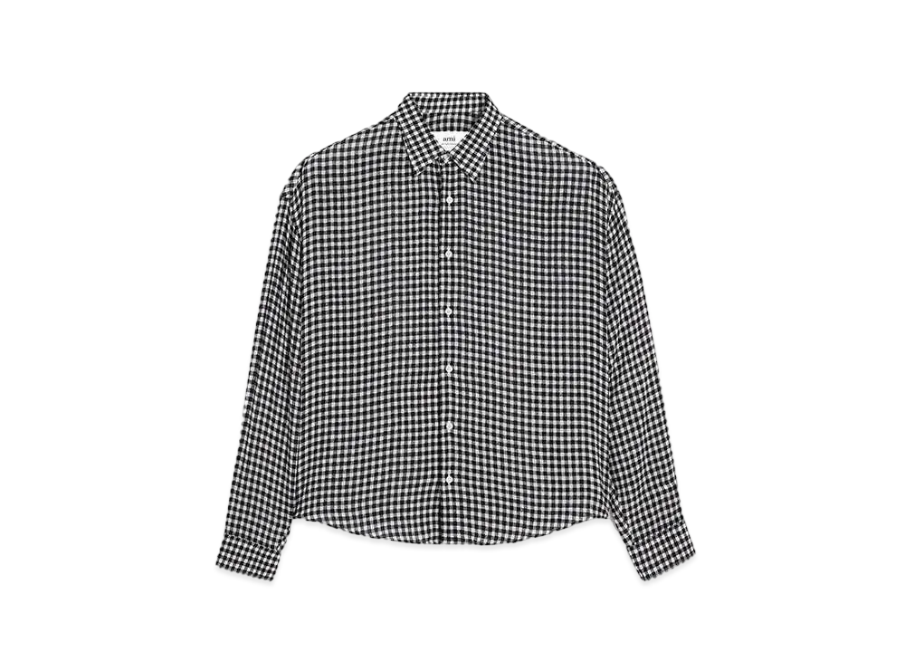 AMI PARIS Viscose Crepe Check Boxy Fit Shirt "Chalk & Black"