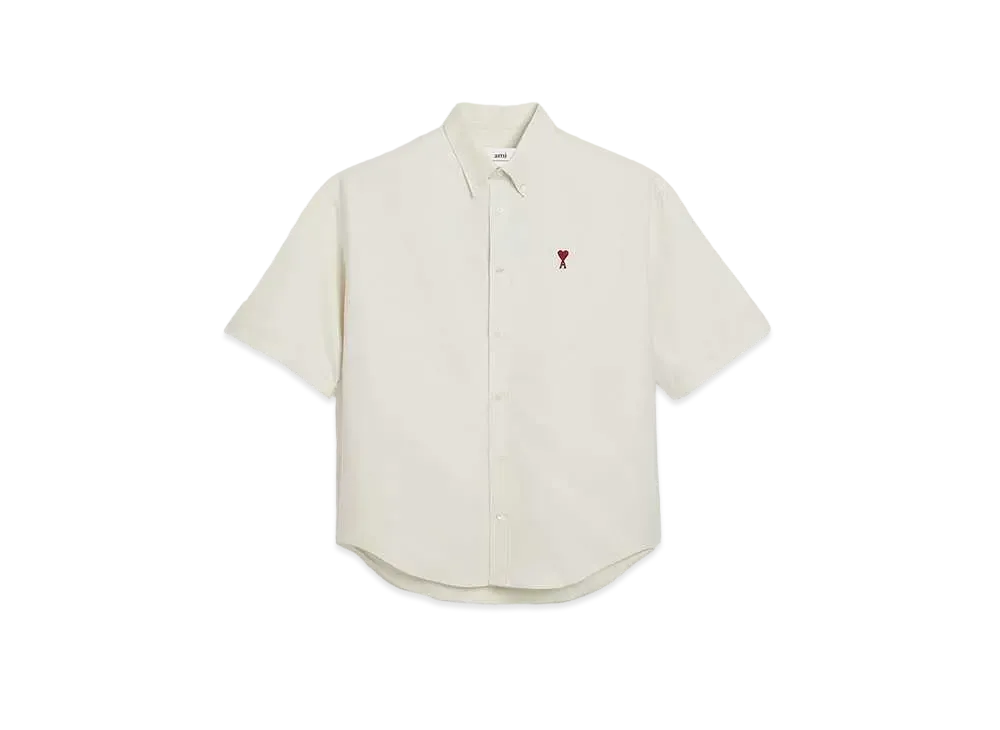 AMI PARIS Cotton Oxford Boxy Fit Short Sleeve Shirt "Chalk "