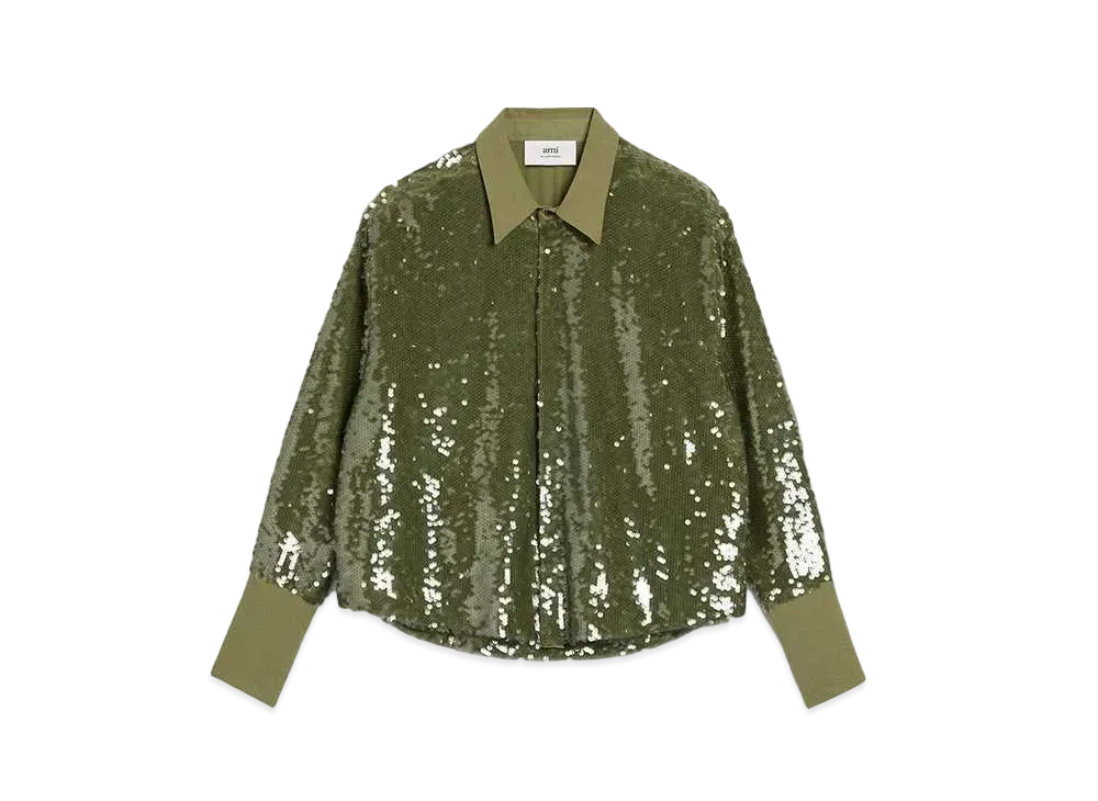 AMI PARIS Sequin Embroidery Over Size Shirt "Olive"