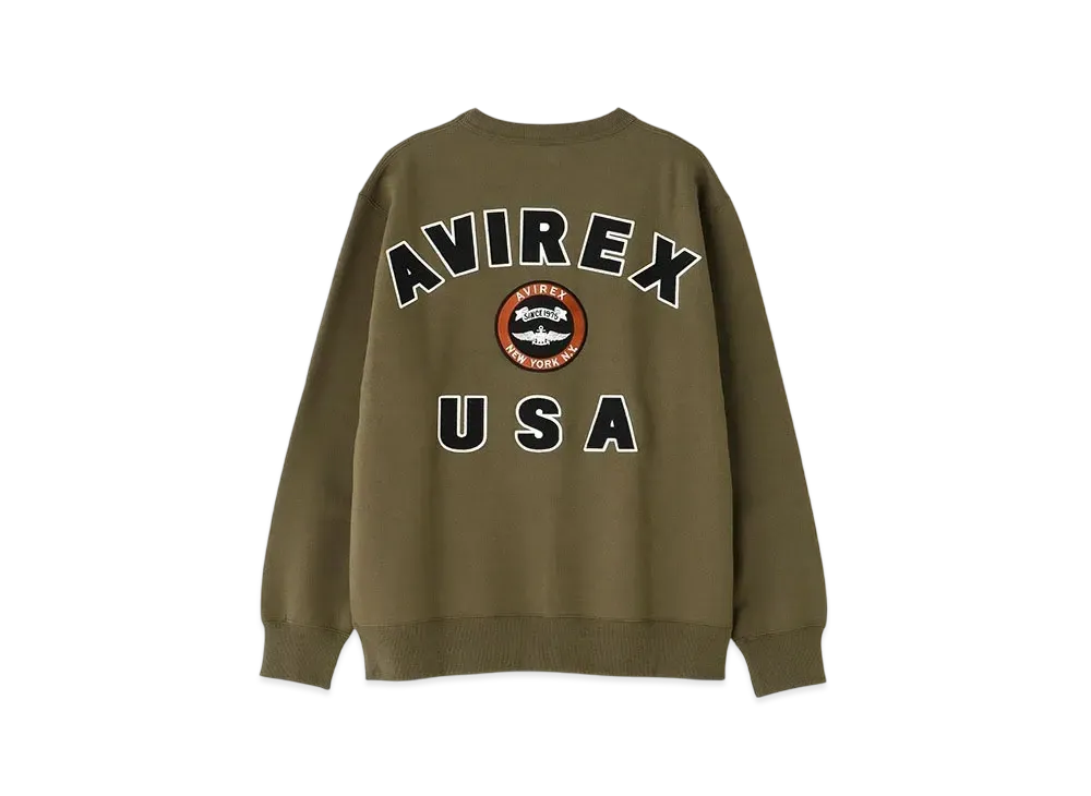 AVIREX Varsity Logo Crew Neck Sweat "Khaki"