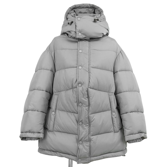 BALENCIAGA バレンシアガ パデッドジャケット サイズ 34 レディース シグネチャー フードロゴ エンブロイダリー 刺繍 ビッグシルエット フーデッド アウター グレー 灰色 イタリア製 555345 TXD14