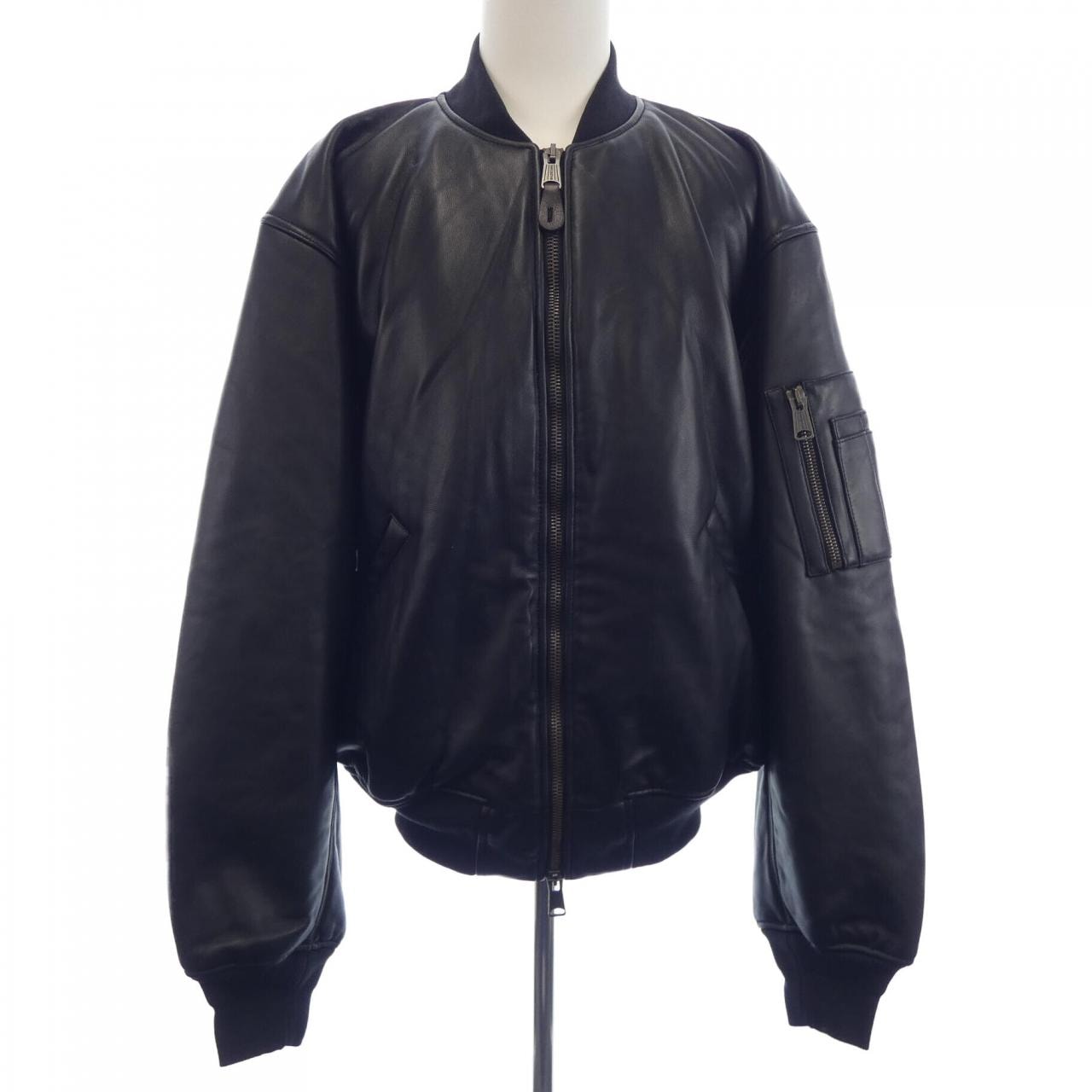 バレンシアガ 103888 クロップドレザーボンバージャケット 50