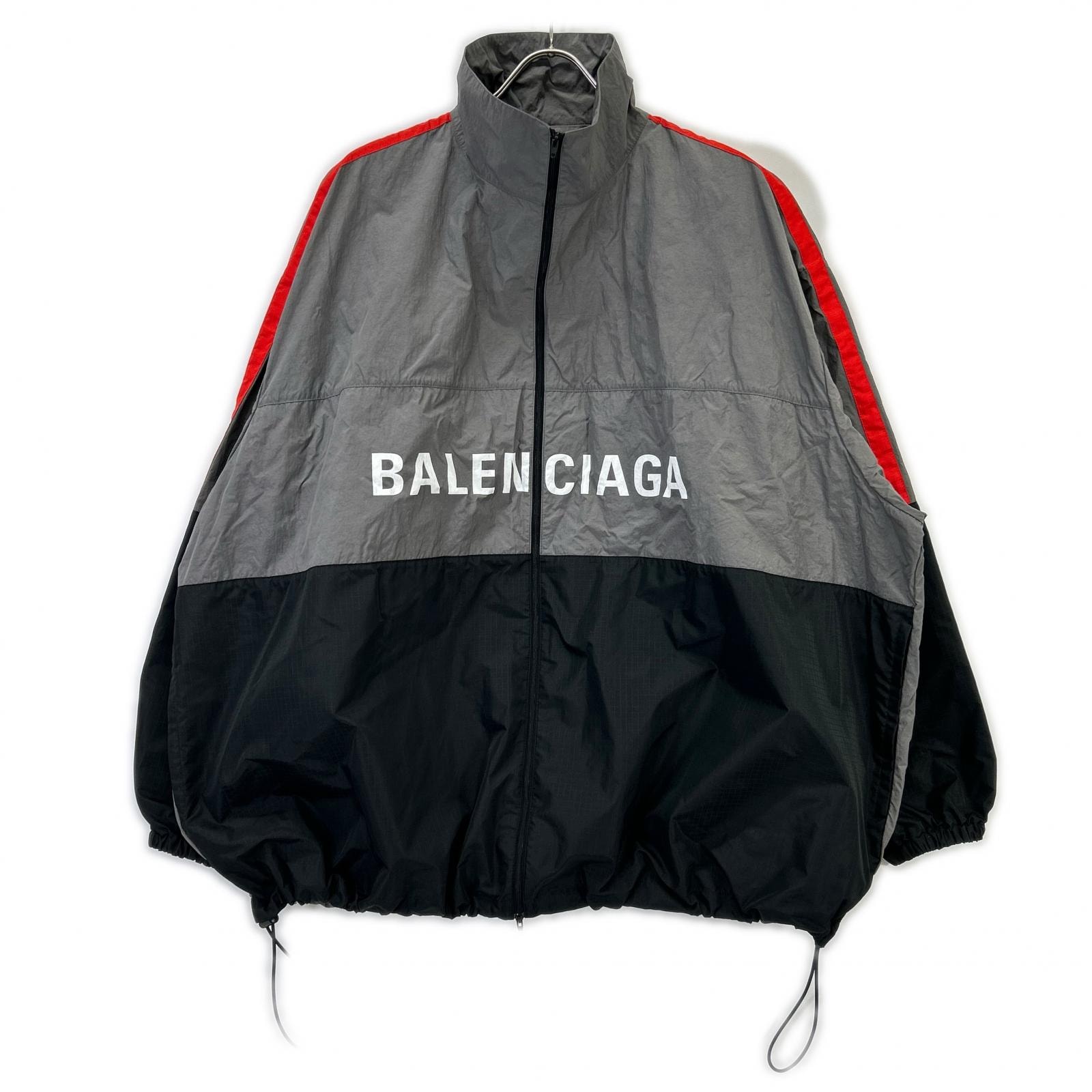 バレンシアガ 534317 グレー ロゴプリント オーバーサイズ ジップアップ ジャケット 48