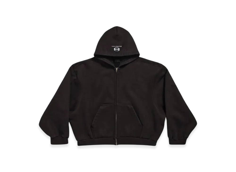 BALENCIAGA Unity Sports Icon Biker Oversized Zip-Up Hoodie "Black White"