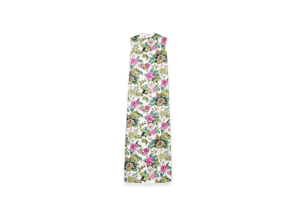 BALENCIAGA Women's Tablecloth Floral Sleeveless Dress "White Pink"