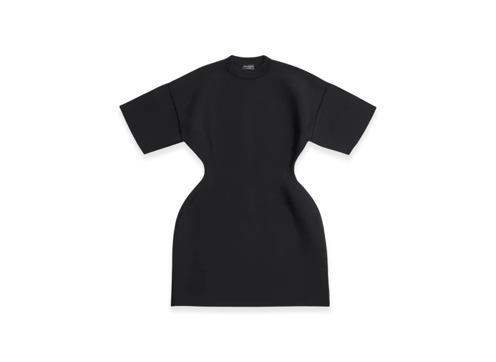 BALENCIAGA Women's Hourglass Crewneck Short Sleeve Dress "Black"