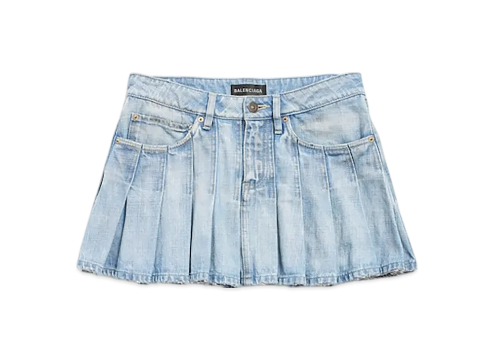 BALENCIAGA Women's Pleated Mini Skirt "Light Blue"