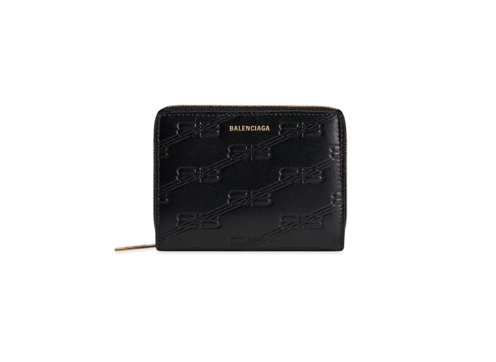 BALENCIAGA Embossed Monogram Bifold Compact Wallet Box "Black"