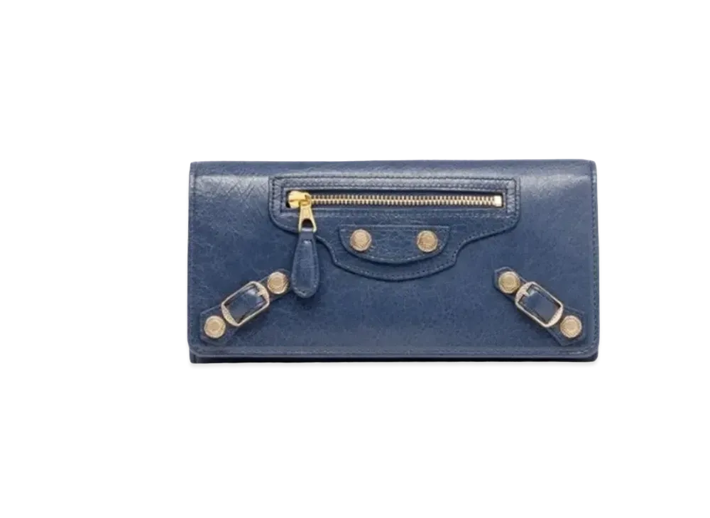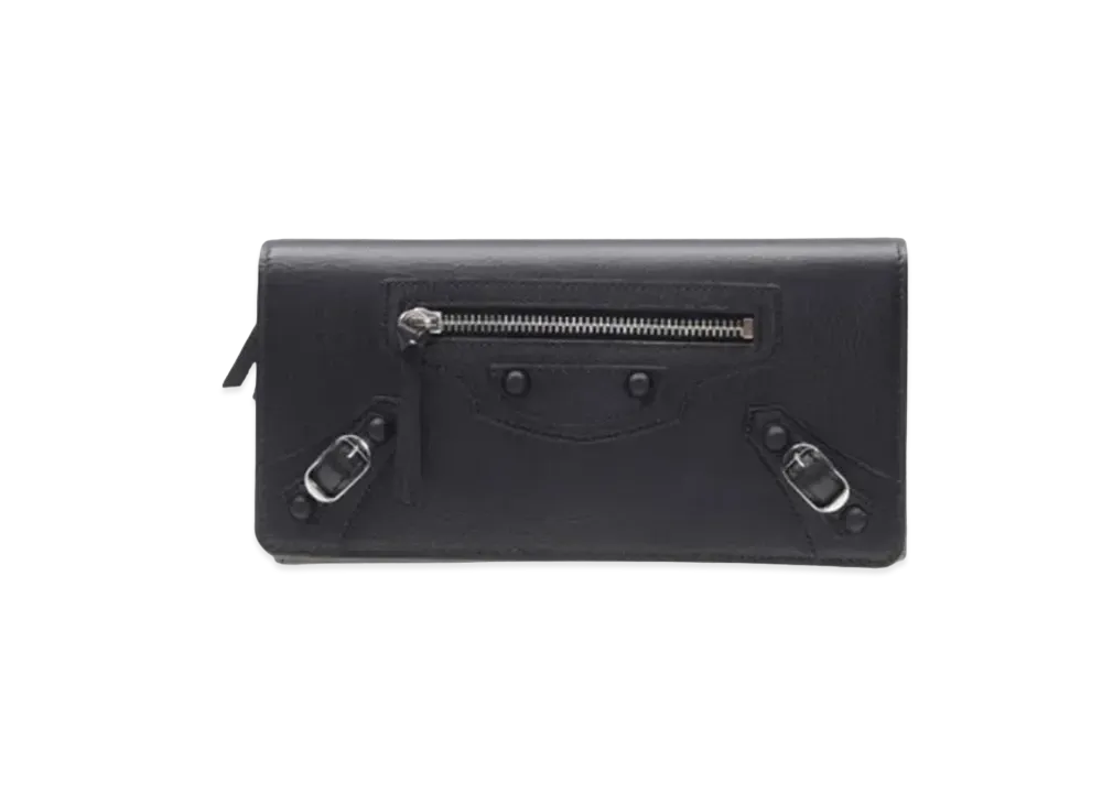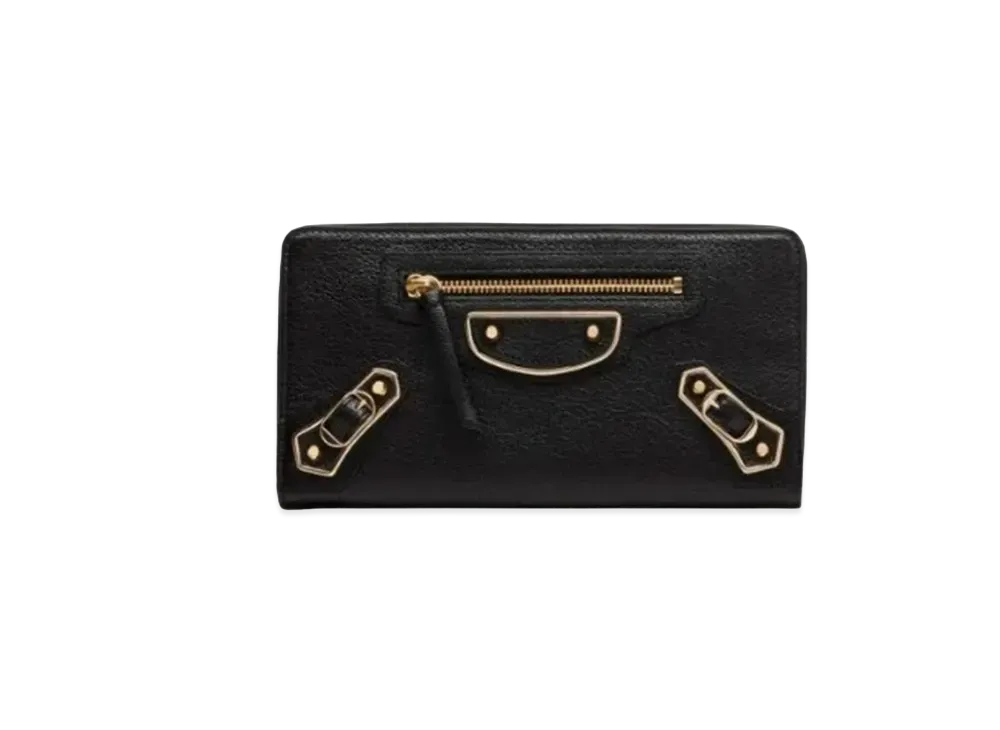 BALENCIAGA Classic Metallic Edge Horizontal Full Zip Wallet "Black"