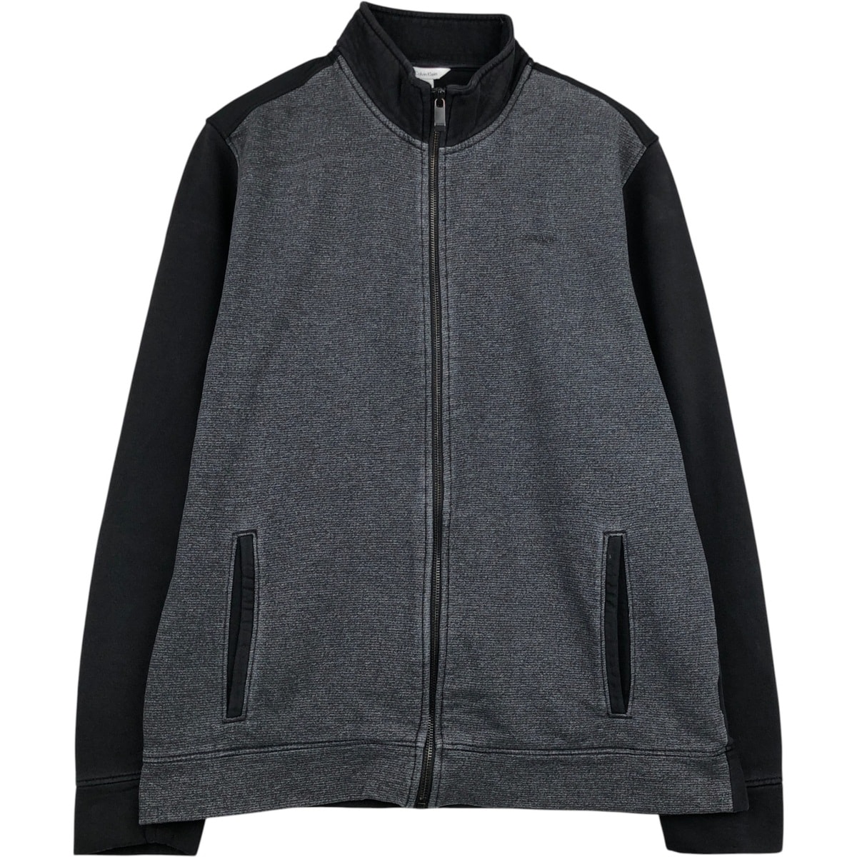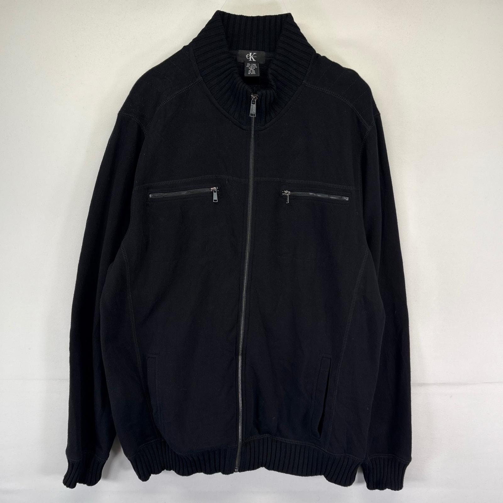 古着 カルバンクライン Calvin Klein ジャケット フルジップ スウェットJKT 大きいサイズ XL ブラック系 無地 メンズ